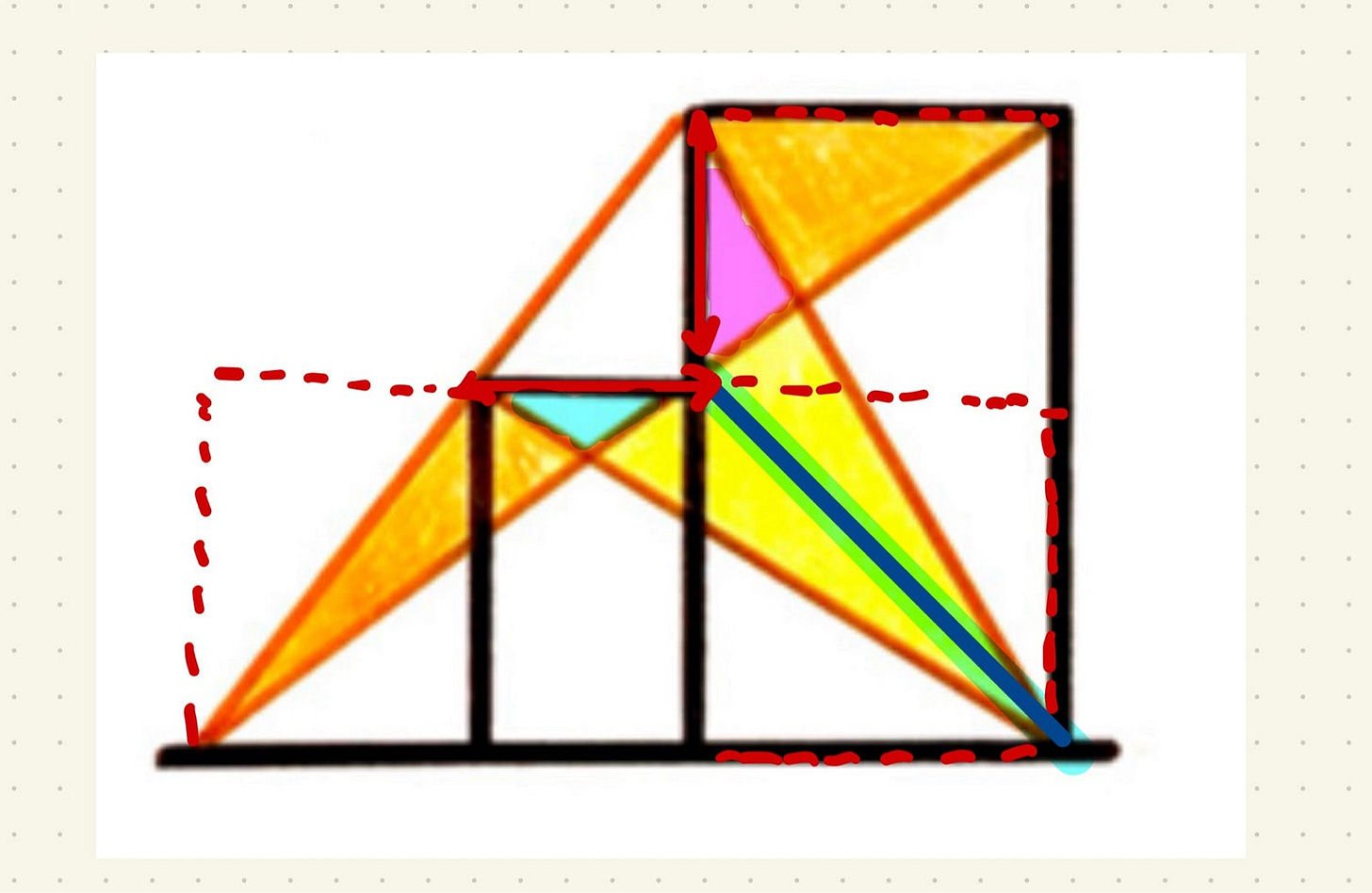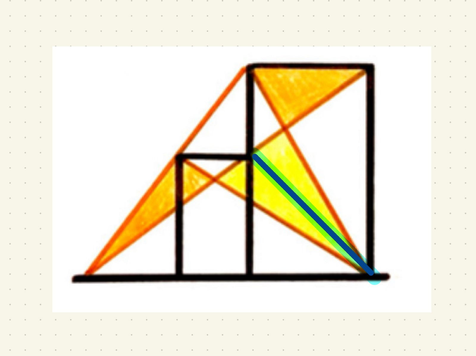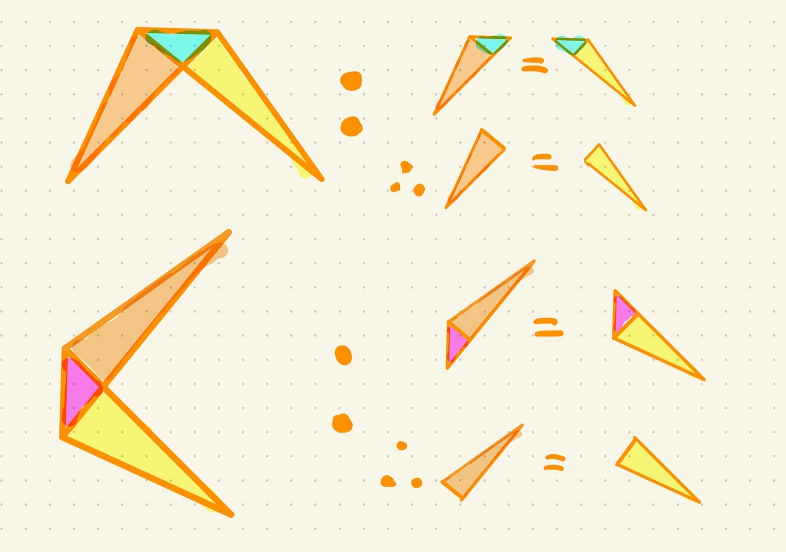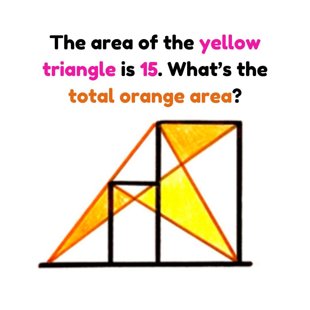 In case you can’t see each orange triangle has the same area as its corresponding yellow triangle, I have added a few lines to indicate their base and height.