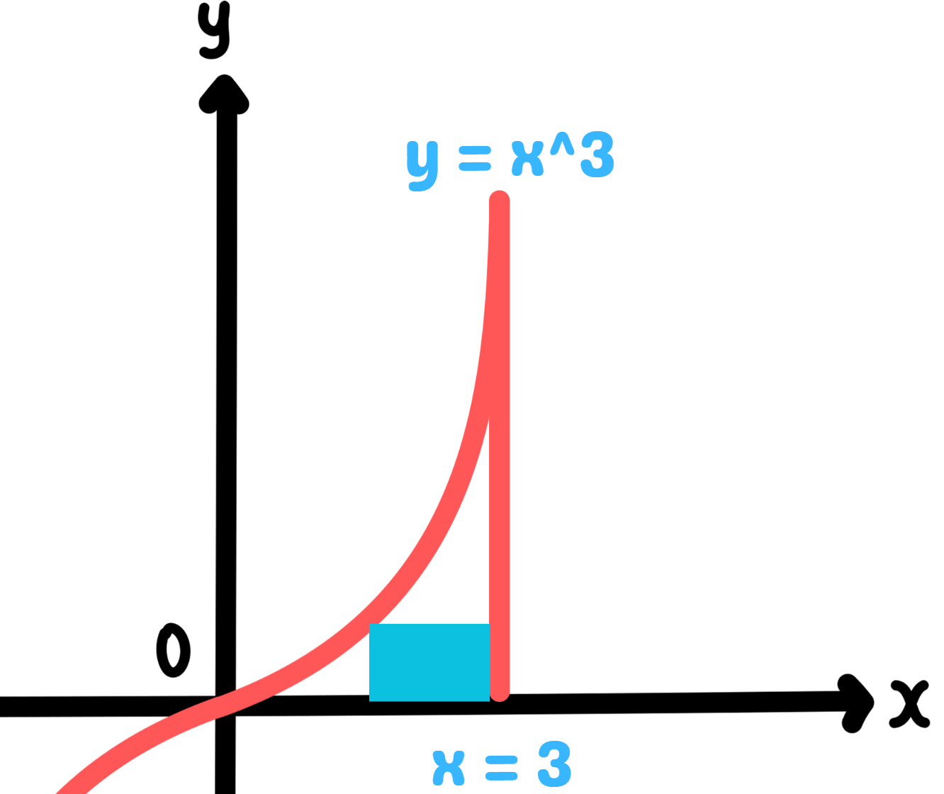 The curve is a standard cubic function, y = x³ and the horizontal line gives us the bound for the rectangle at x = 3.