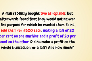 So he sold them both at the same price, yet he made a loss on one and a profit on the other.